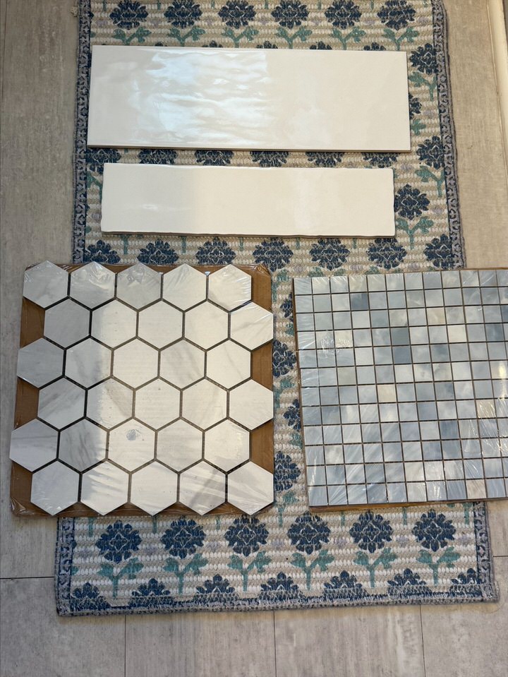 Floor Tile: A large hexagon tile paired with gray grout. This was very intentional—gray grout will help disguise buildup over time and keep the shower looking fresh longer.