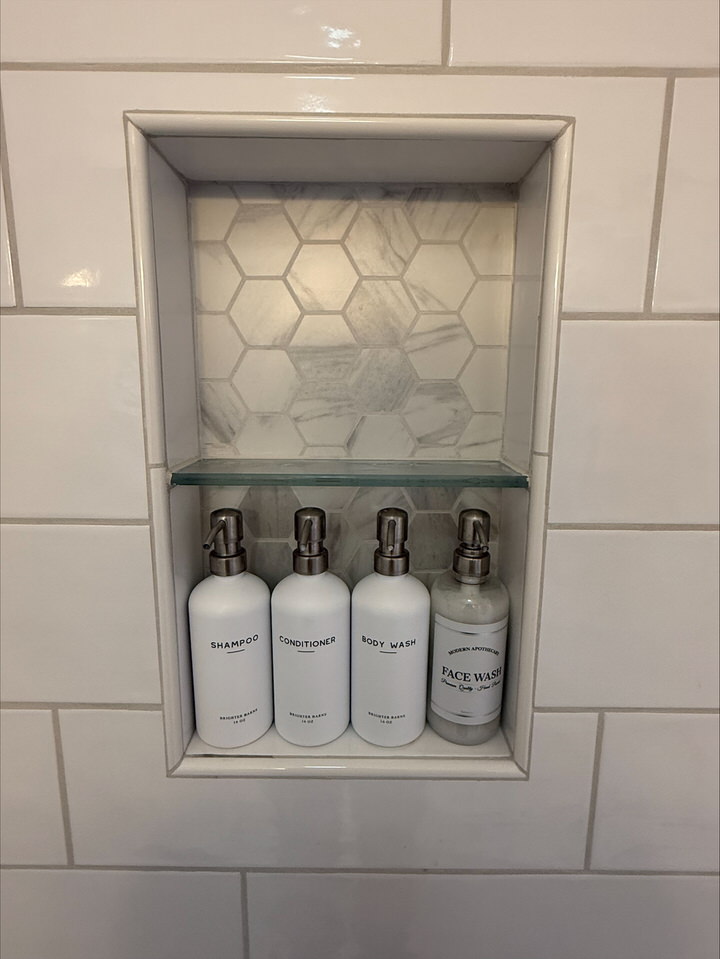A shower niche was a must. I wanted storage that felt intentional, not like an afterthought.
