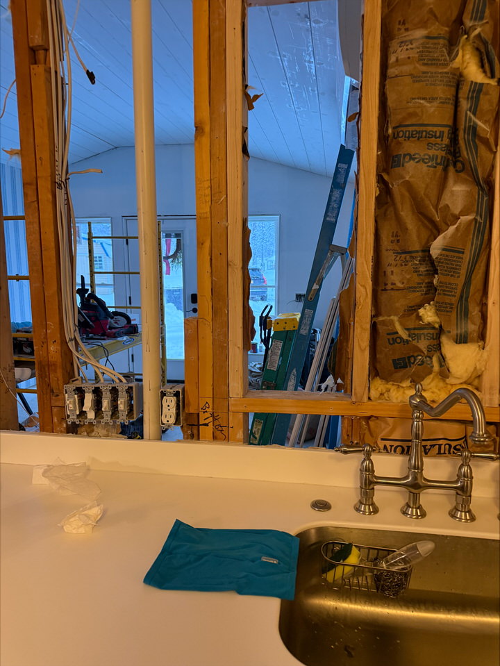 Lighting was another unexpected challenge in this part of the kitchen. We had originally planned to hardwire additional lighting above the sink, but once the electrical work began, it quickly became clear that doing so would be more complicated—and more expensive—than we anticipated.
